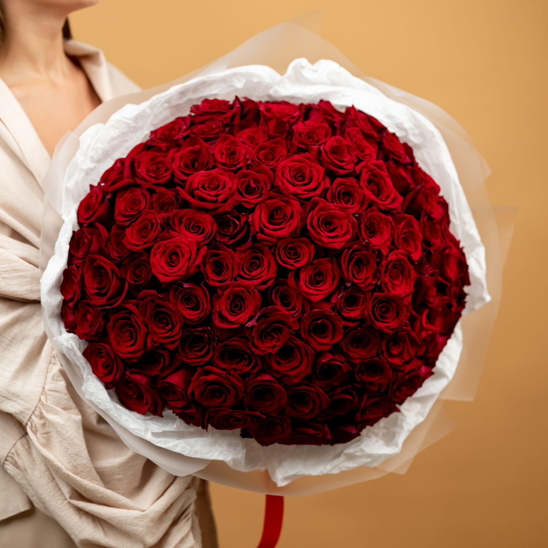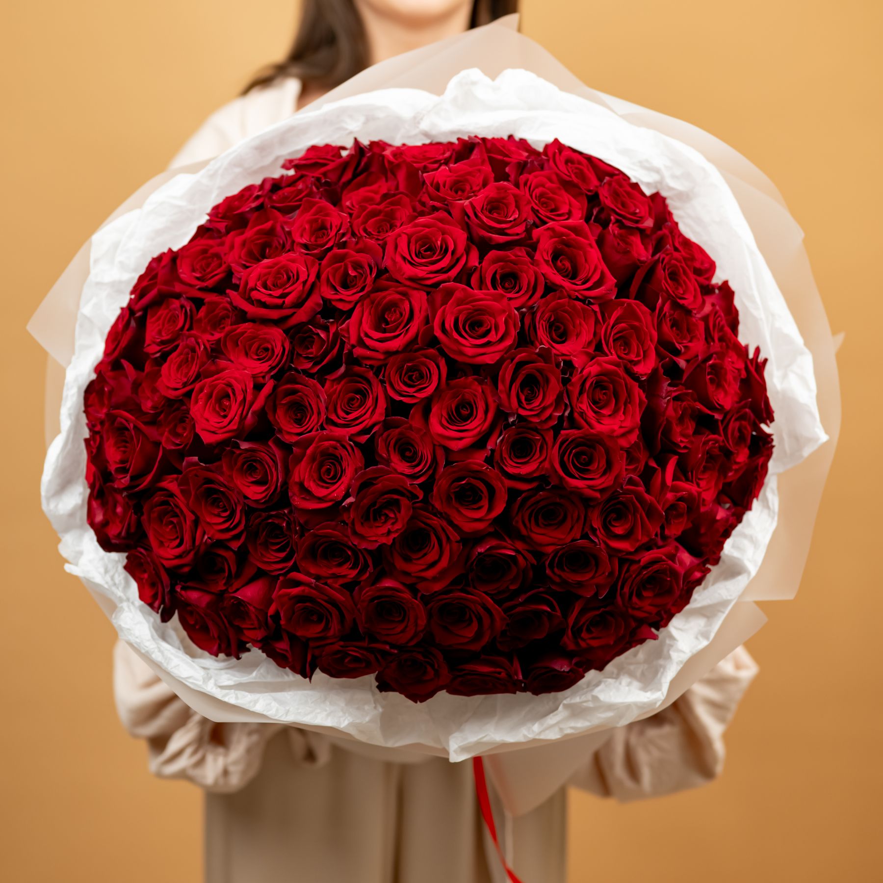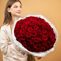 Красная роза 101 шт (60см, сорт Эксплорер)