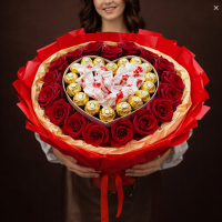Роза - 17 шт. Раффаэлло - 1 шт. Лента атласная - 1 шт. Тишью - 3 шт. ферреро роше - 1 шт. Пленка матовая - 3 шт