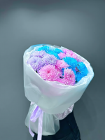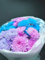 Состав: Кустовая Хризантема - 5 шт Тишью - 2 шт Пленка матовая - 2 шт Лента атласная - 1 шт