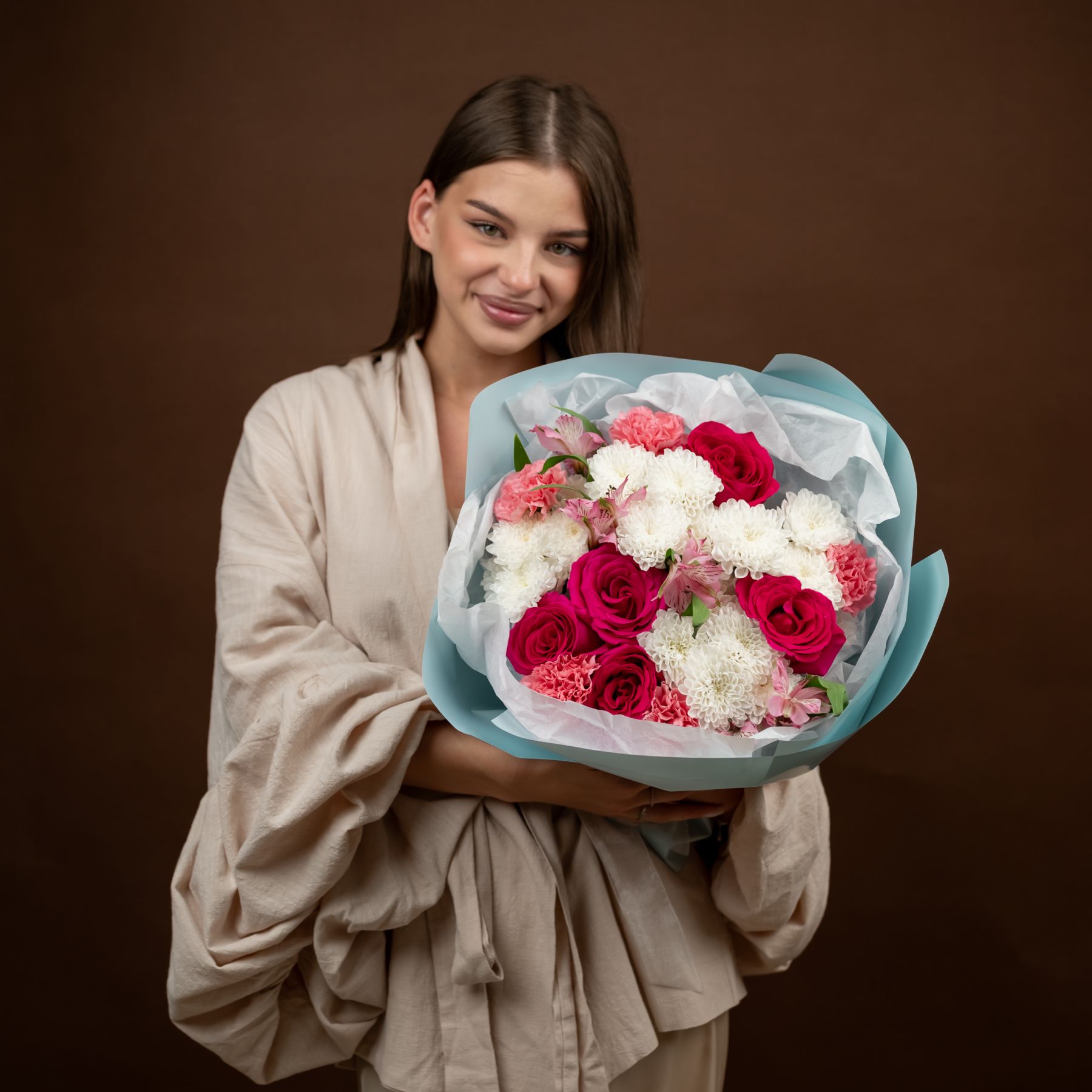 Мы собираем каждый букет из свежих цветов, уделяя внимание каждой детали — от гармонии оттенков до аккуратной упаковки. Если отдельных позиций нет в наличии или они сезонные, мы подбираем замену в той же ценовой категории, сохраняя цветовую гамму и общий стиль композиции, и обязательно связываемся с вами для согласования перед отправкой.