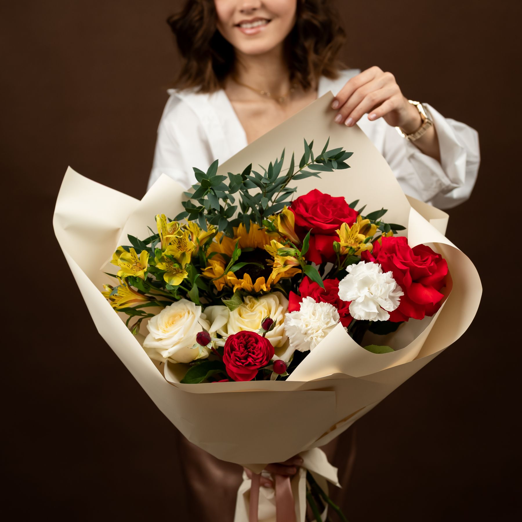 Мы собираем каждый букет из свежих цветов, уделяя внимание каждой детали — от гармонии оттенков до аккуратной упаковки. Если отдельных позиций нет в наличии или они сезонные, мы подбираем замену в той же ценовой категории, сохраняя цветовую гамму и общий стиль композиции, и обязательно связываемся с вами для согласования перед отправкой.