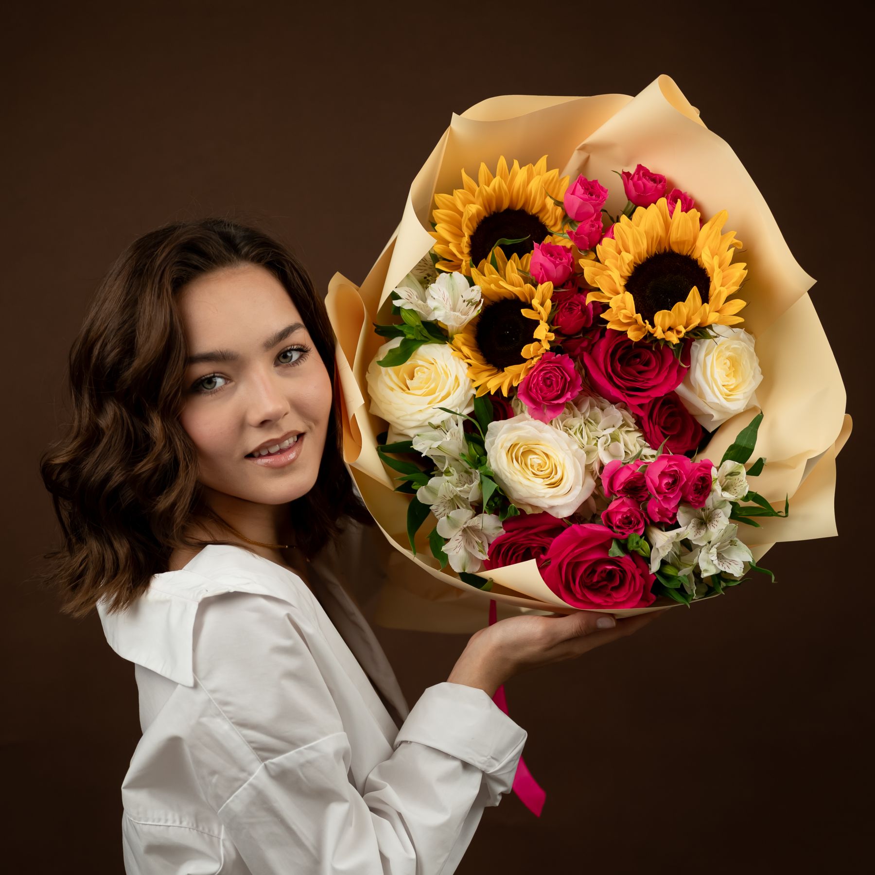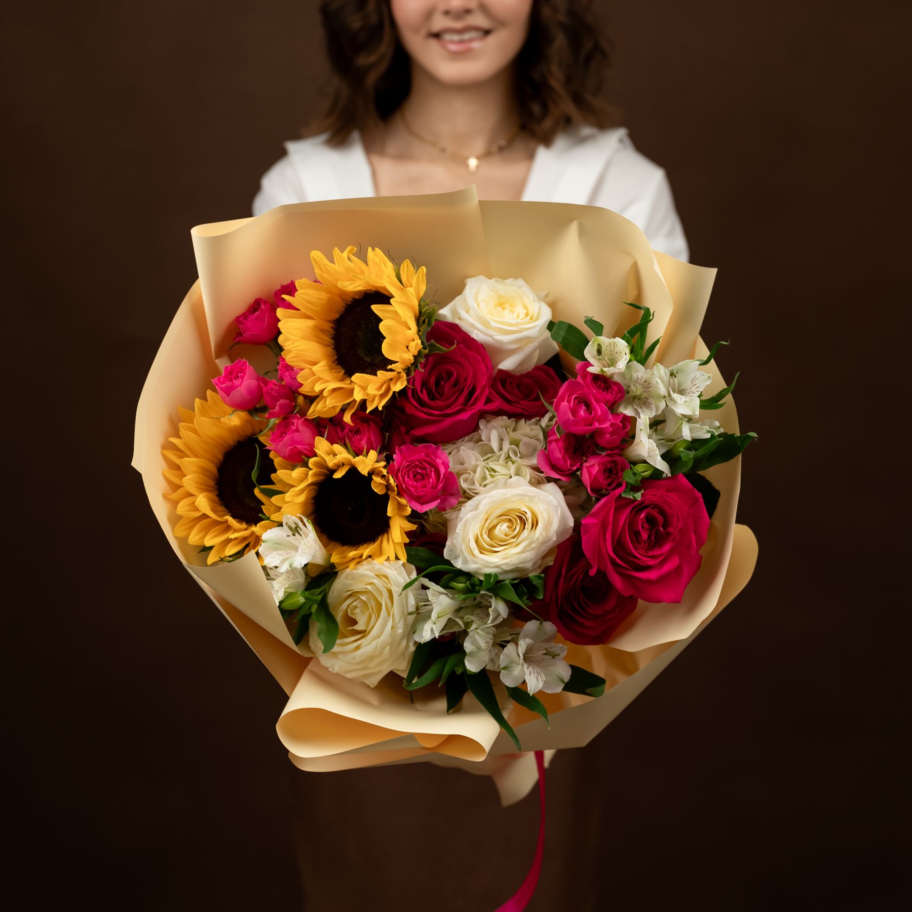 Мы собираем каждый букет из свежих цветов, уделяя внимание каждой детали — от гармонии оттенков до аккуратной упаковки. Если отдельных позиций нет в наличии или они сезонные, мы подбираем замену в той же ценовой категории, сохраняя цветовую гамму и общий стиль композиции, и обязательно связываемся с вами для согласования перед отправкой.