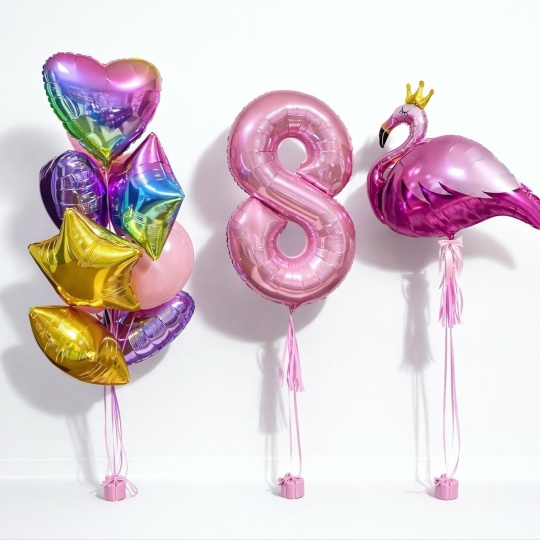 Шар фольгированный фламинго Шар цифра 8 фольгированная 3 сердца фольгированная 1 звезда фольгированная 3 шара латекс 3 грузика